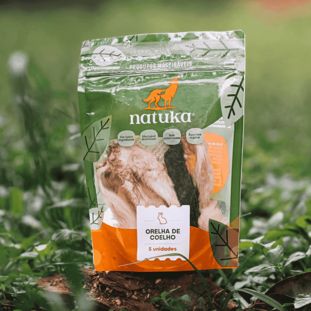 Este mastigável, de baixa rigidez, possui uma aparência impactante, pois é feito a partir das orelhas de coelhos.