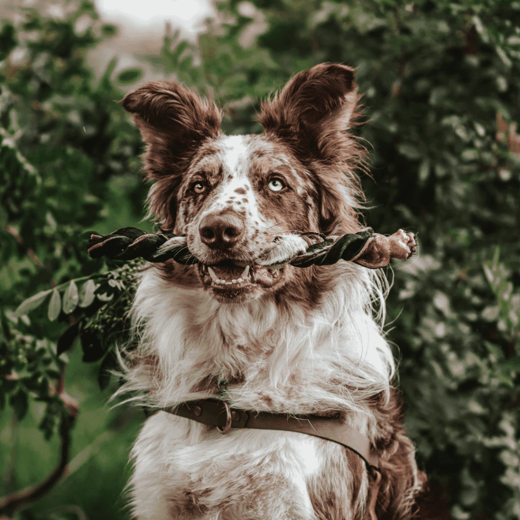 Trançado com 3 tiras de pele de boi, um dos mastigáveis mais resistentes da linha.